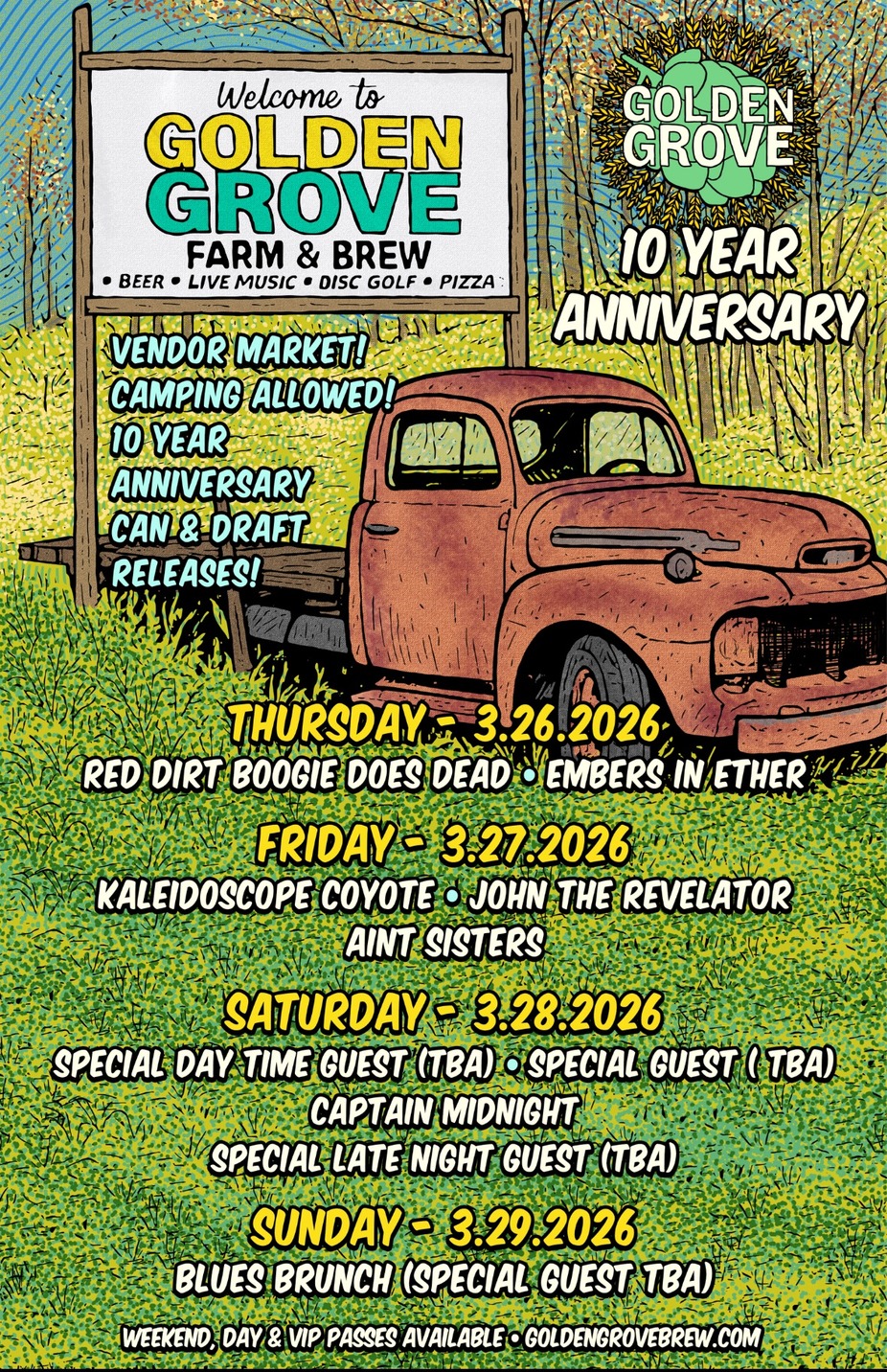 MODERN RELIC returns to GOLDEN GROVE FARM & BREW for a special BIRTHDAY PARTY but all guest are WELCOME!!